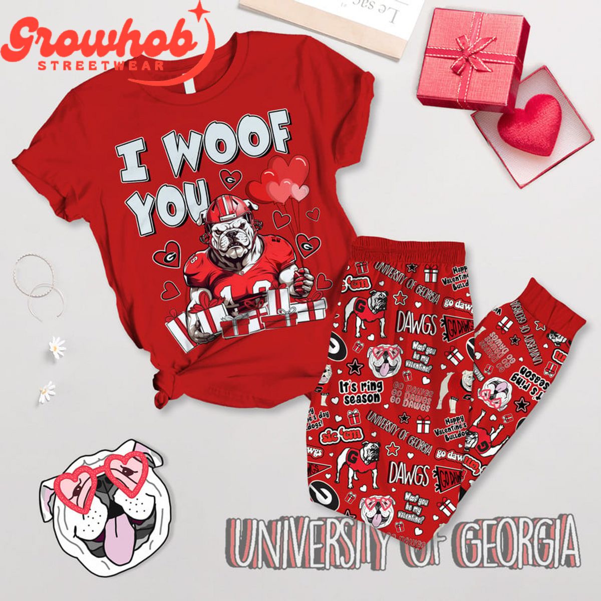 Georgia Bulldogs Woof You Valentine Fleece Pajamas Set